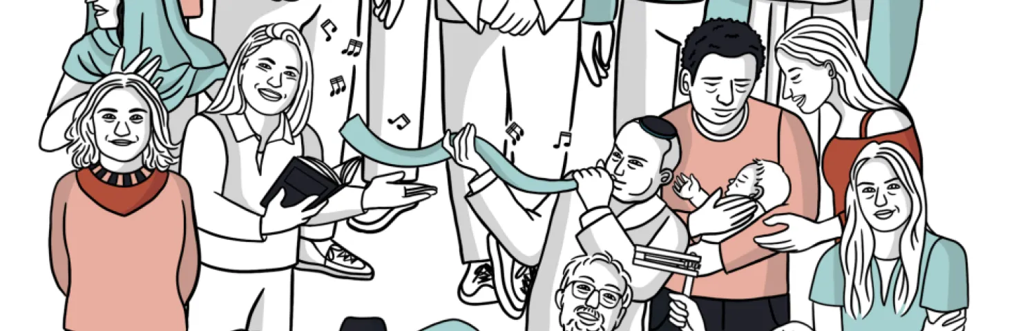 Une large place est faite ensuite à l’évocation des différentes judéités et des rapports à la citoyenneté, aux traditions et à la religion. Là encore, le dessin de foule d’Anouk Glorieux reproduit sur l’affiche de l’exposition nous aide à embrasser cette diversité – que l’on retrouve dans le degré d’observance de la « cacheroute » (soit l’ensemble des lois et rituels alimentaires, vestimentaires et autres régissant la vie quotidienne).