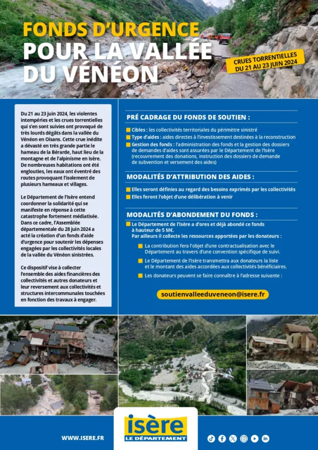 Les donateurs peuvent dorénavant se faire connaître au courriel suivant : soutienvalleeduveneon@isere.fr