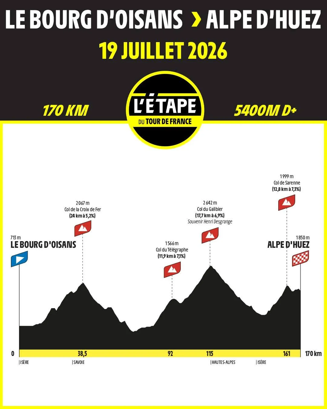 Il sera l'un des plus difficiles de l'histoire du Tour avec la montée par le col du Télégraphe, le col du Galibier, et par le col de Sarenne avant d'arriver à l'Alpe d'Huez !
