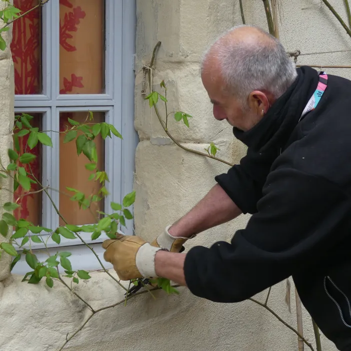 Initiation à la taille des rosiers par Christian Carminati, jardinier du musée à l'occasion de l'ouverture du jardin médiéval
