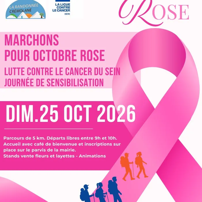 Pour Octobre Rose participez à la traditionnelle randonnée crémolane : une marche solidaire de 5 km, ouverte à tous,