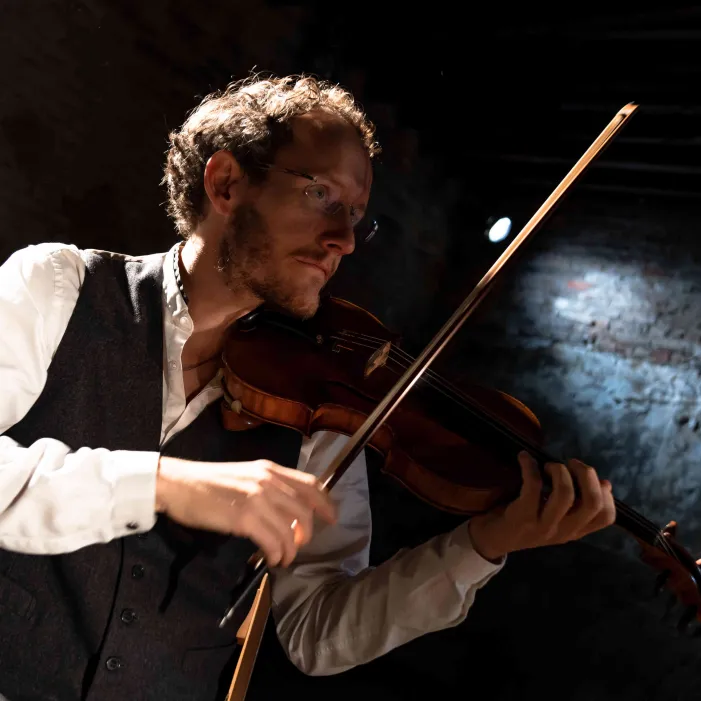 Laissez-vous porter par le violon : une rencontre sensible entre musique, œuvres et émotions. Un face-à-face musical avec les œuvres d’Arcabas.