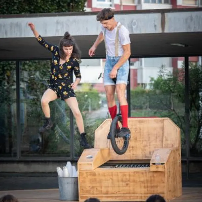 Comme un clin d'œil à Ernest et Gabrielle, ce duo de jonglage et d'acrobaties nous parle d'une rencontre.