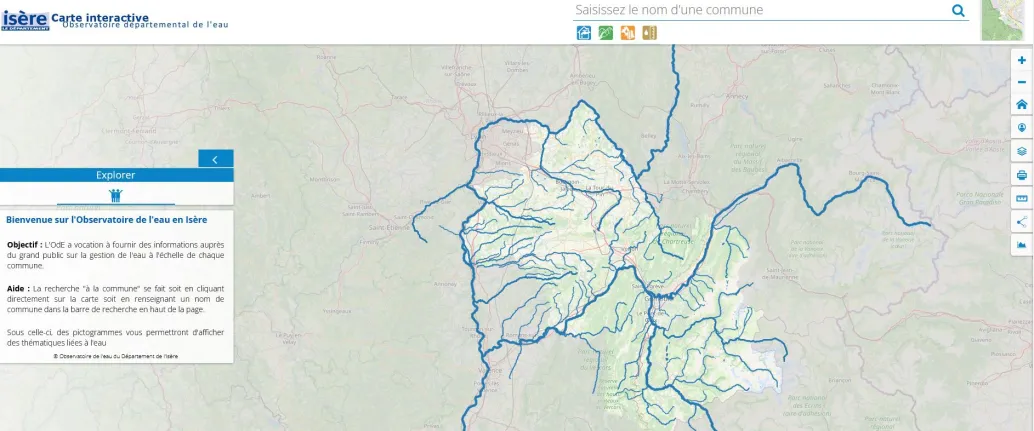 Depuis 2011, le Conseil Départemental de l’Isère a mis en place un observatoire de l’eau. A l’échelle de l’Isère, l’observatoire de l’eau regroupe des données dispersées sur différents sites internet ou propres au Conseil Départemental. Ces données sont traitées, l'observatoire permet ensuite de les visualiser.