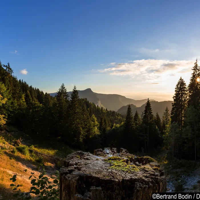 En remontant le bois des bergers, rejoignez les alpages du vallon des Écouges offrant un point de vue sur la plaine de l’Isère.