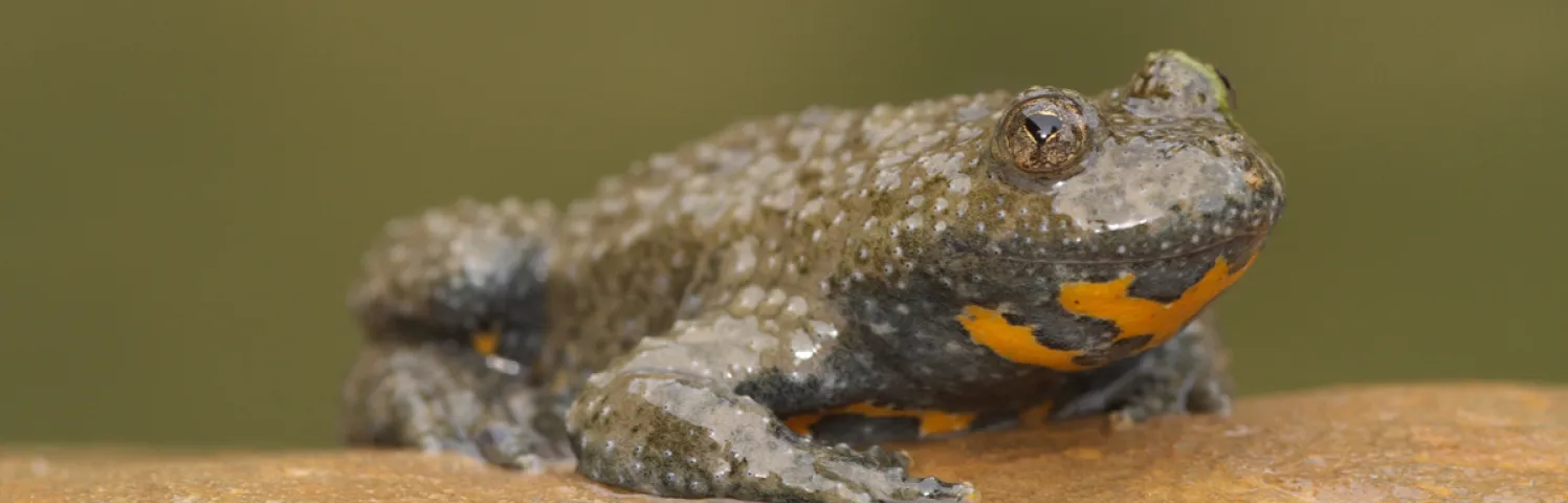 Le sonneur à ventre jaune est un petit crapaud très particulier, à la fois mimétique et coloré.