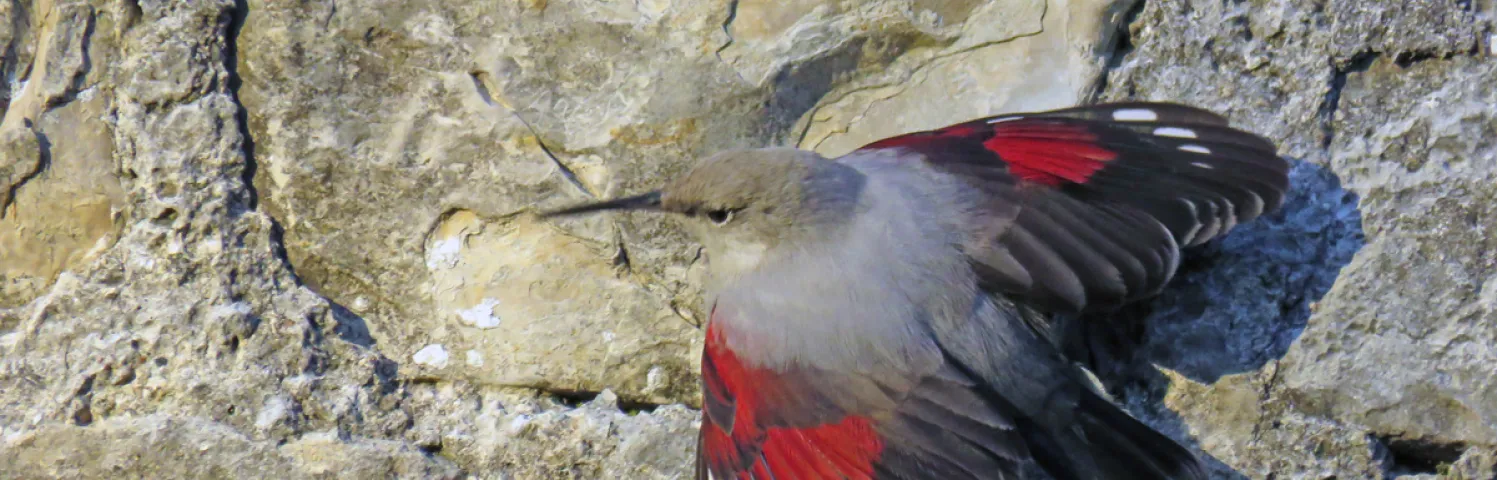 Le Tichodrome échelette est un passereau de petite taille aux ailes arrondies rappelant un papillon dans certaines de ses attitudes et ses coloris.