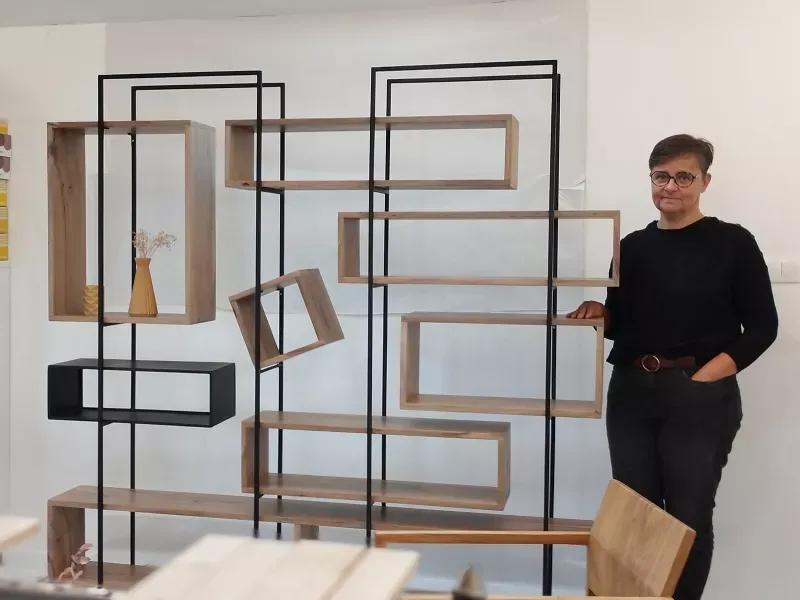 Ingénieure Arts et Métiers de formation, cette native de Marseille a passé vingt ans dans l’industrie à différents postes avant d’entamer une reconversion en ébénisterie chez les Compagnons du tour de France, à Échirolles, en 2017. Un an plus tard, elle ouvrait son atelier en face de sa maison, entre Chartreuse et Belledonne.