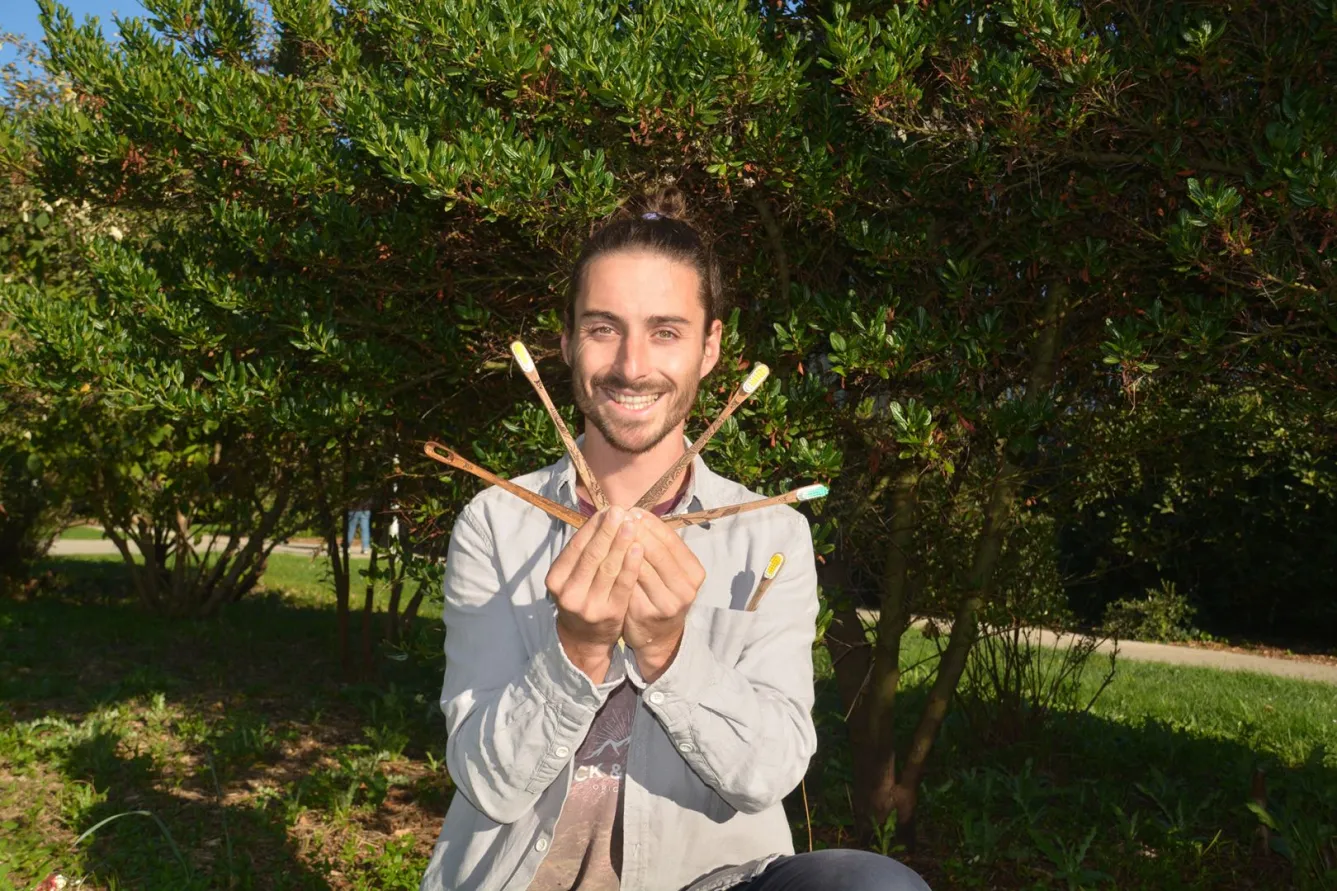 Lucas Michel, 29 ans, se présente comme un “artisan du sourire”. À Saint-Vincent-de-Mercuze, il fabrique des brosses à dents en bois des Alpes avec tête rechargeable, conçues pour être écologiques, jolies et personnalisables. Une production artisanale unique en Isère.