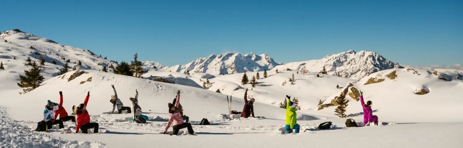 Le mot yoga signifie relier. En l’exerçant dans la nature, on s’unit à tout ce qui nous entoure dans une parfaite harmonie. Et c’est un véritable délice de réaliser les postures avec les flocons de neige qui nous caressent le visage !